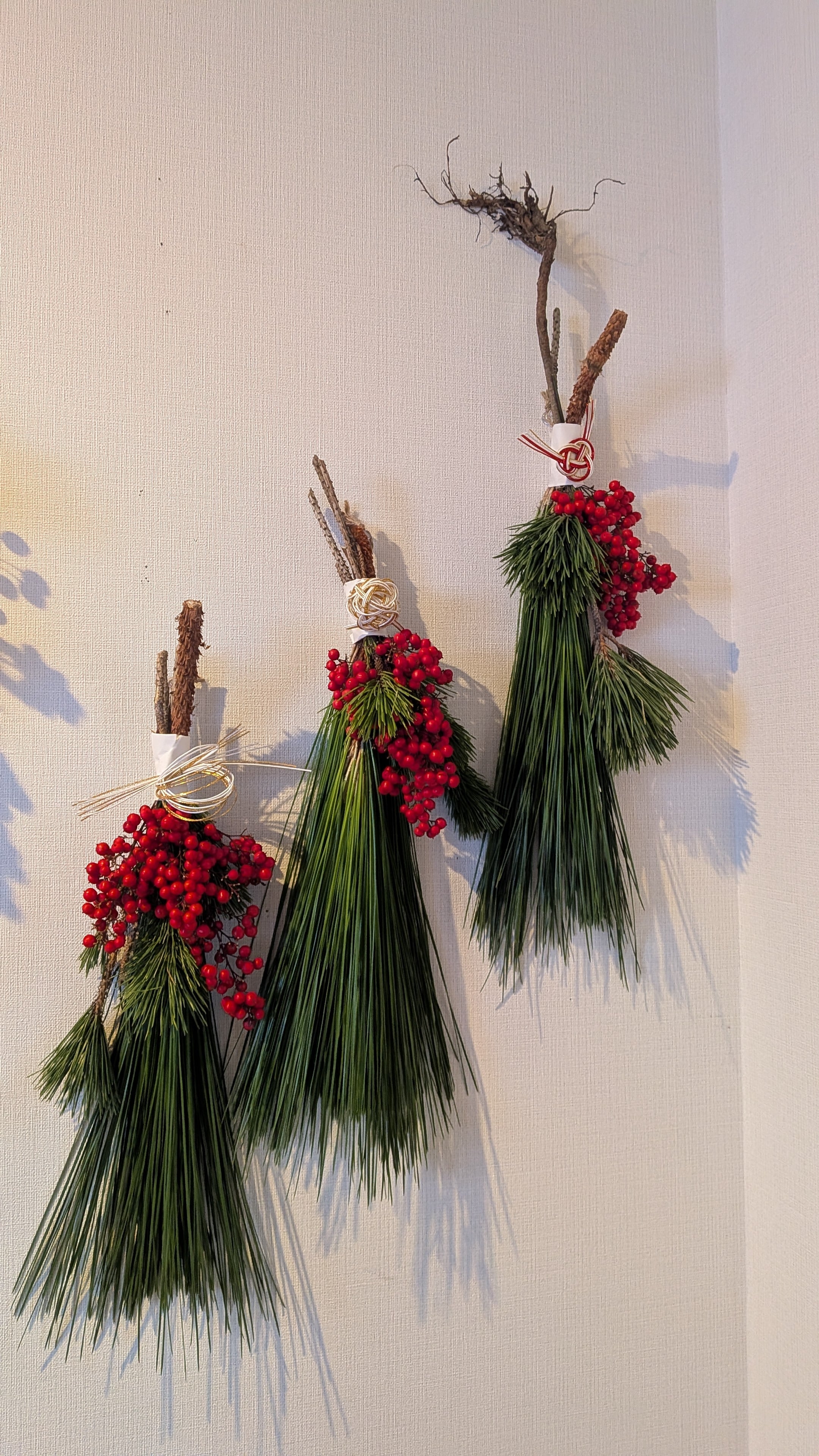 今回の松飾りは、松の王様と呼ばれる「大王松」を使用してシンプルかつ上品に仕上げました。