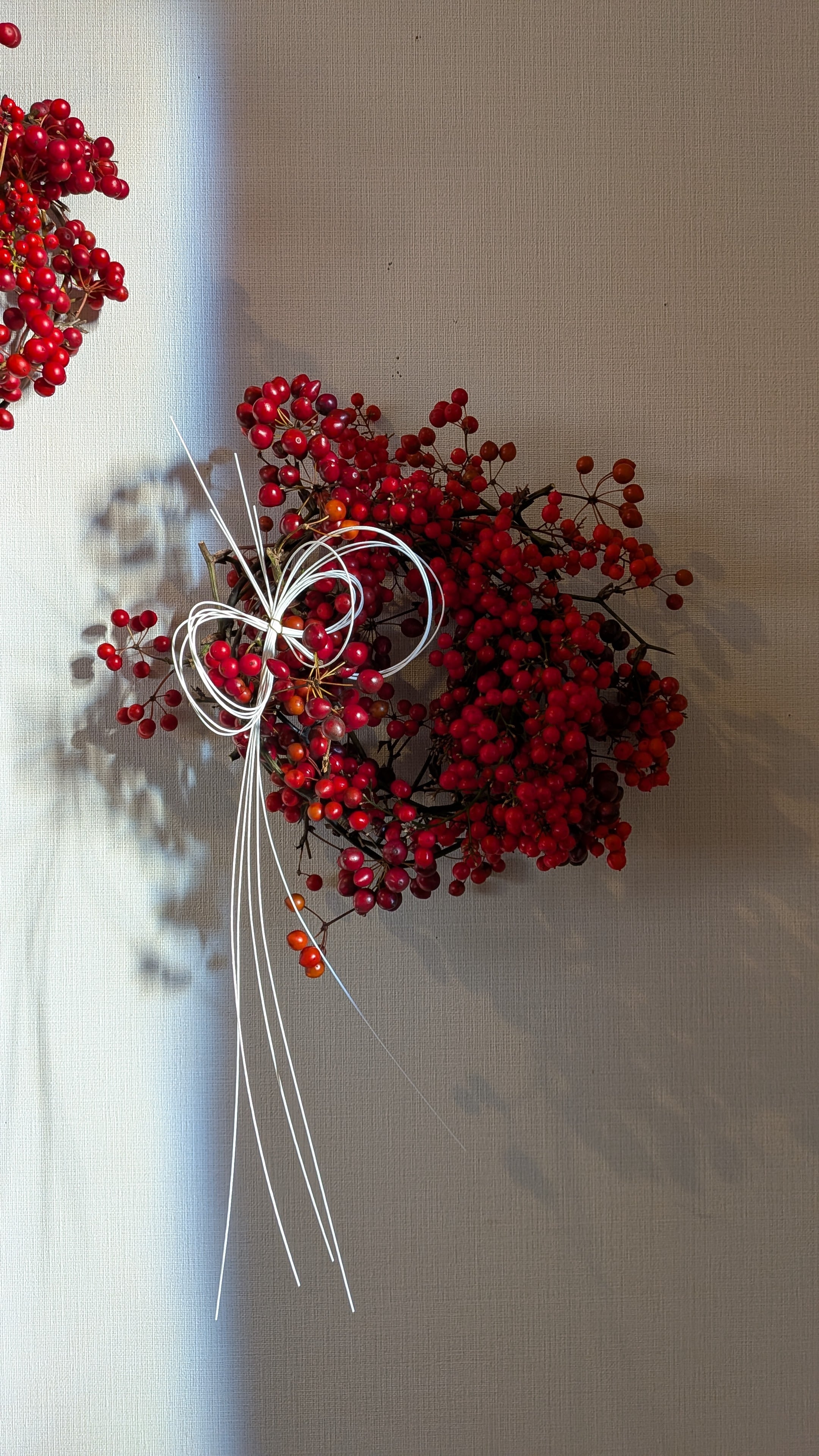サンキライと南天のみを使用したシンプルおしゃれなリース。